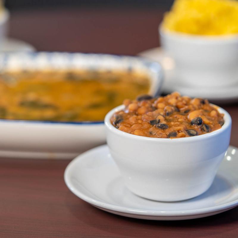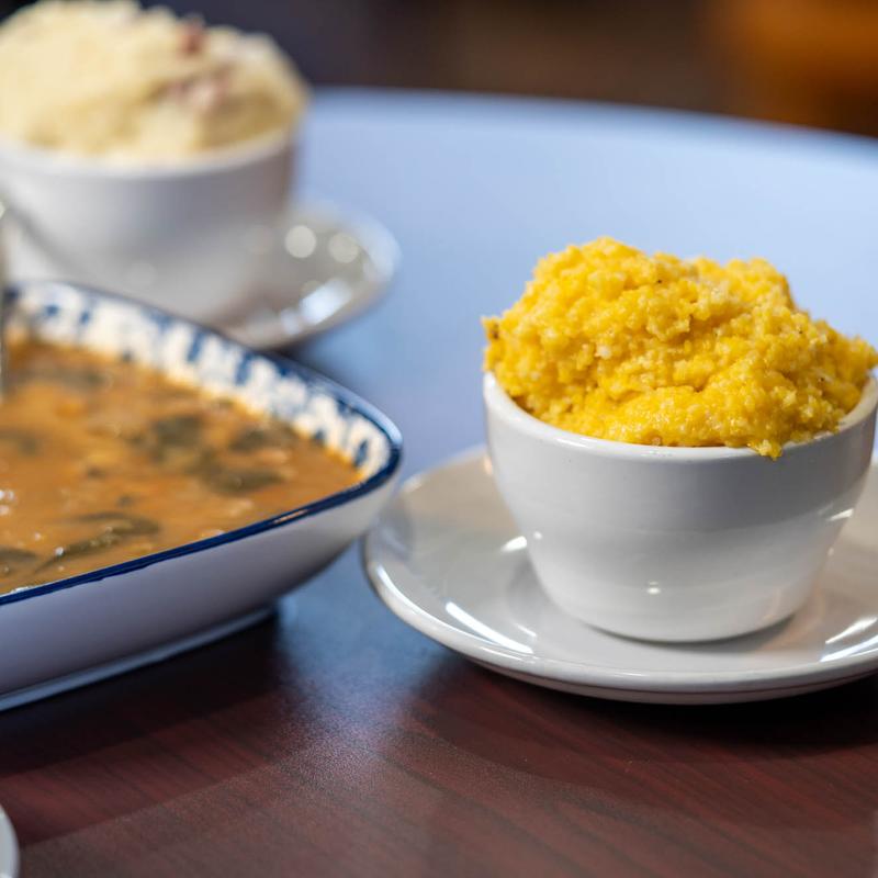 Brasied USDA prime beef tenderloin tips served over country grits with peppers, onions and a southern demi sauce.